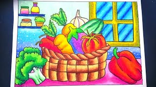 - Menggambar dan Mewarnai Sayuran dalam keranjang dengan gradasi crayon | how to draw vegetable basket